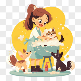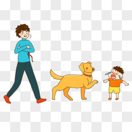 手绘卡通不文明行为不牵犬绳吓坏女孩
