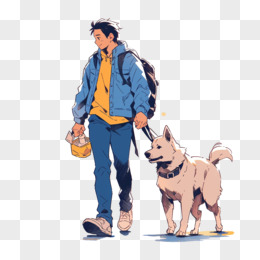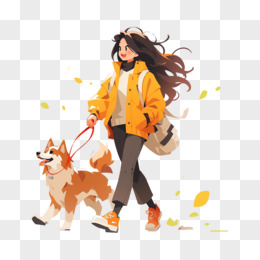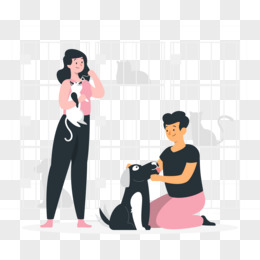 创意夫妇插画矢量素材下载,夫妇,人物散步,公园,宠物狗,遛狗