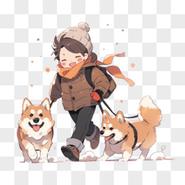 冬天小女孩和狗狗可爱互动插画