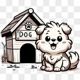 可爱卡通小狗和狗窝插画