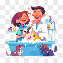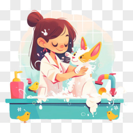 卡通手绘狗狗洗澡元素