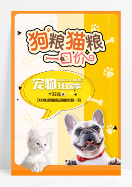 红色卡通狗粮猫粮一口价宠物狂欢季优惠活动宠物店狗粮海报设计