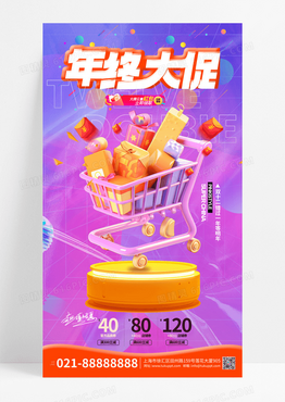 紫色渐变3d年终大促双十二电商促销活动手机宣传海报