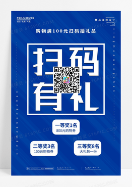 蓝色渐变金币扫码有礼购物袋抽奖海报