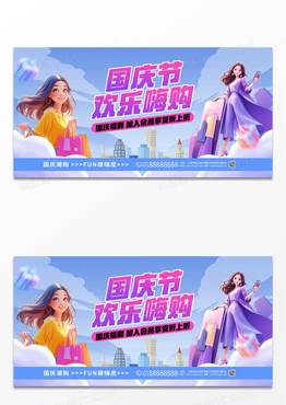 紫色卡通国庆活动展板超市购物广场活动促销展板设计模板