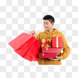 男子捧着礼物盒手拿购物袋免抠实拍元素