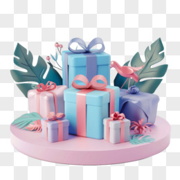 3D立体礼物盒里装节日促销卷免抠元素
