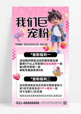 蓝色红色渐变宠粉福利优惠券购物篮宣传海报