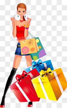 618只手绘卡通女孩拖着商品满载而归