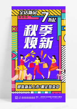 秋季焕新购物美女蓝色简约海报创意海报设计