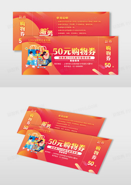 橙色渐变插画购物券优惠券代金券商场超市购物券