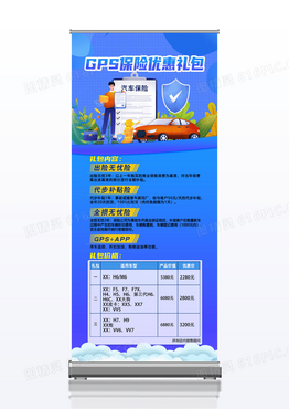 蓝色卡通GPS保险优惠礼包保险展架易拉宝