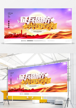 时尚大气征兵固防兴国安邦征兵宣传展板