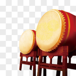 一组青色调手绘国风乐器套图之乐鼓免抠素材