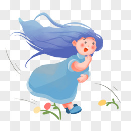 卡通手绘被风吹的女孩素材