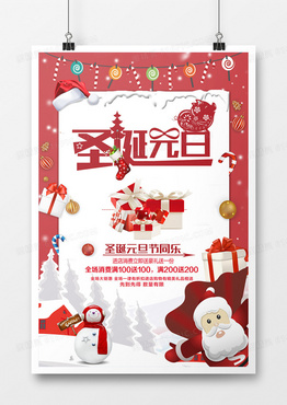 时尚红色圣诞元旦促销海报