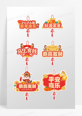 手绘插画风虎年挂件免抠元素
