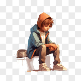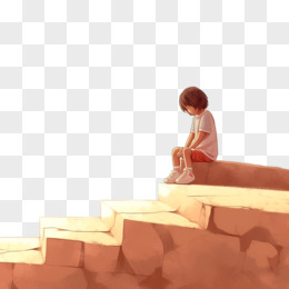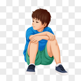 手绘插画男孩孤独的坐着哭泣免抠素材