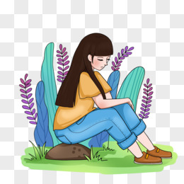 手绘插画女孩孤独的坐着哭泣免抠素材