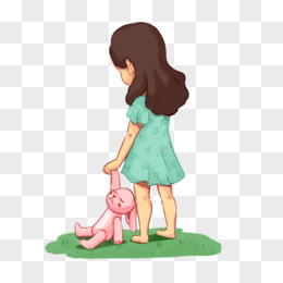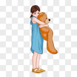 手绘孤独的小女孩抱着熊玩偶插画元素