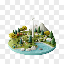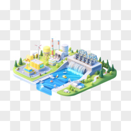 3D插画风格新型发电水力风力光伏发电免抠元素