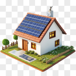 3D卡通一个屋顶有太阳能板的房子免抠元素