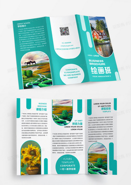 绿色时尚油画手绘画画绘画班美术班招生三折页