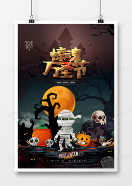 手绘惊魂万圣节不给糖就捣蛋万圣节海报