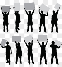 众人举广告牌人物剪影矢量
