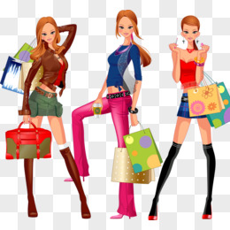 卡通手绘女孩逛街选购衣服场景免抠元素
