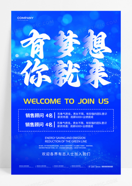 蓝色科技光亮璀璨有梦想你就来招聘海报招聘文案海报
