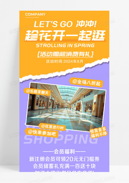 紫色趁花开一起逛商场消费活动促销活动宣传长图