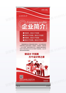 红色简约企业简介介绍展架易拉宝