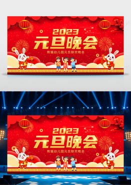 彩色光辉光晕2023新年兔年幼儿园元旦联欢晚会展板