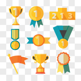 扁平化奖杯与奖牌矢量图
