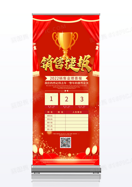 大气红色2022销售捷报排行榜易拉宝