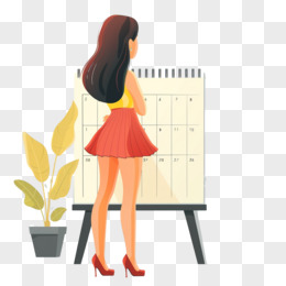 3D插画一个男人拿着对号牌子站在一个钟表前免抠元素