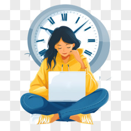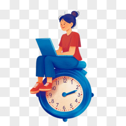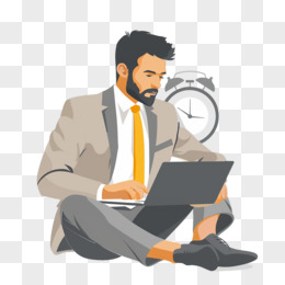 插画一个西装男人在电脑前工作墙上挂着一个钟表免抠元素