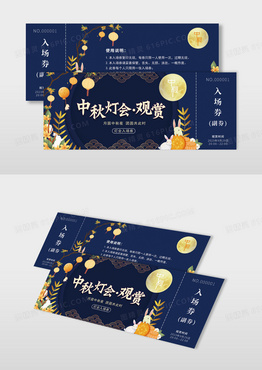 蓝色色插画中秋灯会观赏入场券宣传中秋入场券