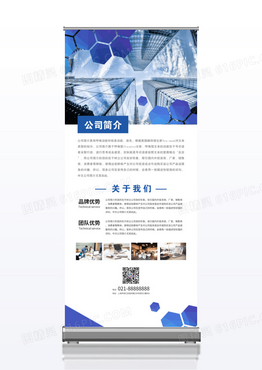 蓝色几何矢量公司简介关于我们宣传易拉宝X展架公司介绍易拉宝