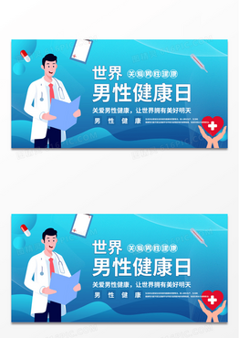 简约风蓝色世界男性健康日关注健康海报世界男性健康日展板