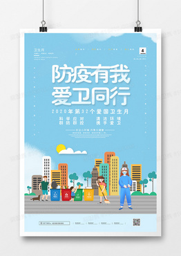 防疫有我爱卫同行全国爱国卫生月宣传海报