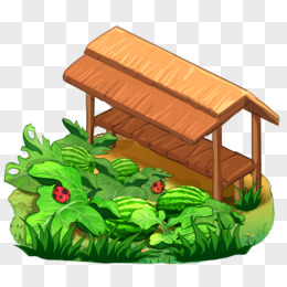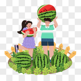 手绘插画风西瓜地里小女孩举着大西瓜丰收微景观免抠元素