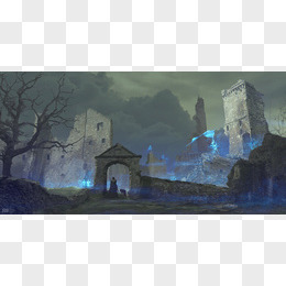 手绘动漫插画古堡