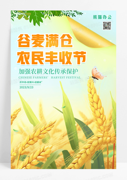 简约插画谷麦满仓中国农民丰收节宣传海报