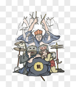 一组手绘青年敲锣打鼓插画套图合集元素一