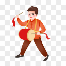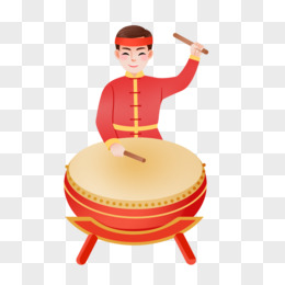 一组手绘立体春节元素合集之敲鼓免抠元素