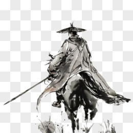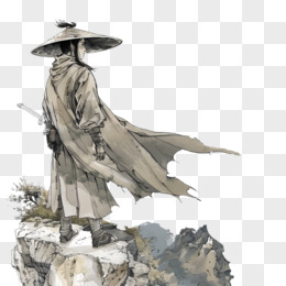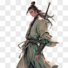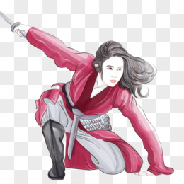水墨风古风中国古代红衣女侠客持剑正面图免抠元素