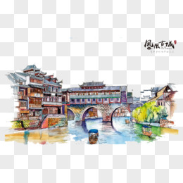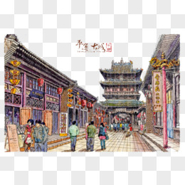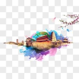 手绘金边国潮建筑景德镇祈福殿免抠元素