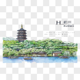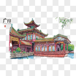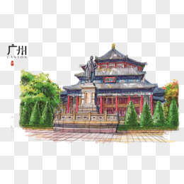手绘国潮风城市建筑地标长沙爱晚亭素材